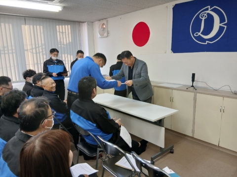 社内を大掃除した後は安全講習会と社員表彰を行いました。